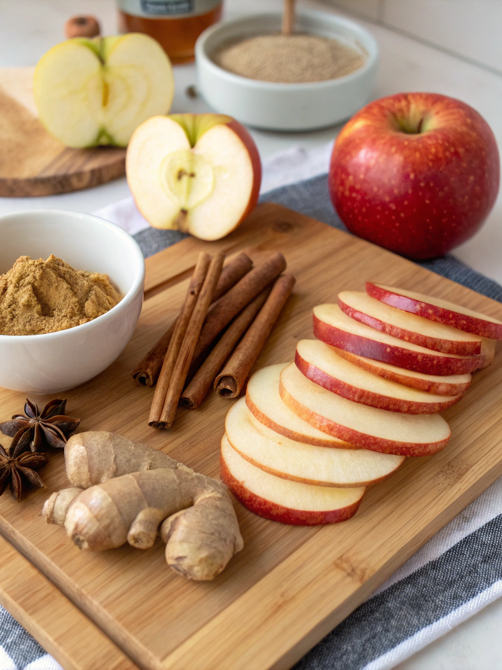 Waschen Sie zunächst die Äpfel gründlich unter fließendem Wasser. Schälen Sie den Ingwer mit einem Gemüsemesser oder einer Schälbürste – oder lassen Sie die Schale dran, wenn Ihnen eine intensivere Wirkung lieber ist. Schneiden Sie beide Zutaten in grobe Stücke, etwa 2-3 cm groß. So fördern Sie eine optimale Extraktion der wertvollen Inhaltsstoffe.